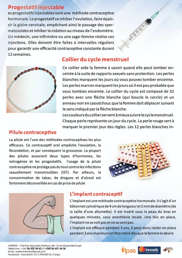 S.O.S Femmes du Congo fait la promotion des droits des femmes en matière de santé sexuelle. A travers la télémédecine, la sensibilisation sur la planification familiale, l’éducation sexuelle complète des adolescents et jeunes. Nous prônons la liberté de la femme de disposer du choix de ses organes reproductifs.