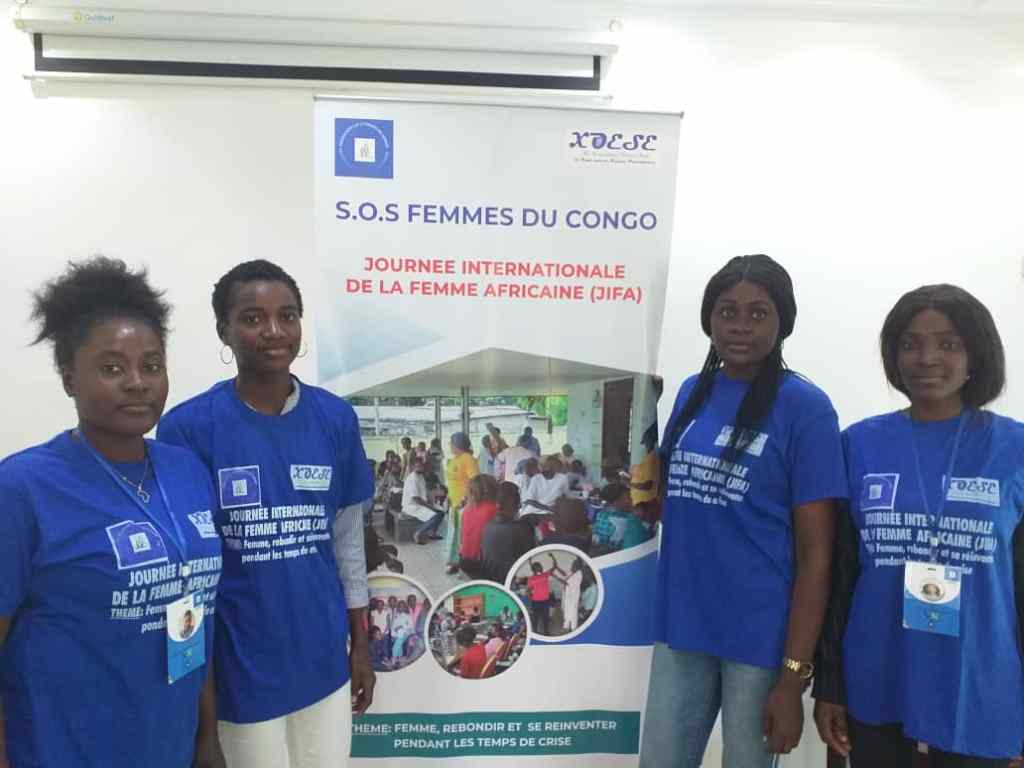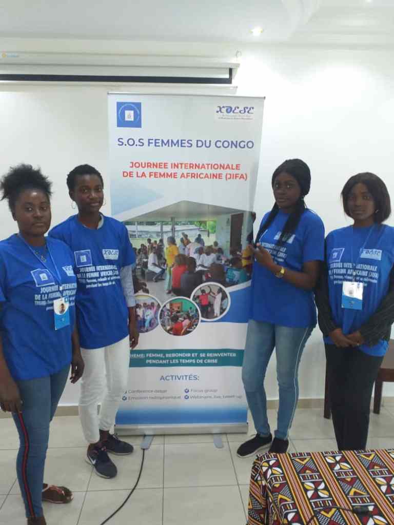 La Journée Internationale de la Femme Africaine en sigle JIFA, célébrée chaque le 31 Juillet de chaque année. Un moment qui donne l’occasion aux femmes du vieux continent (Afrique) de s’exprimer et revoir leur positionnement aux seins des sociétés. Souvent, plusieurs plateformes s’attèlent à organiser des rencontres d’échanges, des séminaires, forums et atelier, permettant d’amplifier les actions à mener pour contribuer à l’amélioration significative de la situation actuelle de la femme Africaine. C’est ainsi, pour rendre cette journée riche en valeur morale et instructive, l’Association S.O.S Femmes du Congo a tenu ce 09 Août à Brazzaville, une conférence débat, autour du thème : << Femme, rebondir et de réinventer pendant les temps de crise >>. Ceci sous la supervision de la Directrice Exécutive de ladite organisation, Mme Victorine MOUNGALI et des autres structures représentées à cette rencontre, par certaines dames, comme le cas de Mme Fleury Nevil AHOUE IKOBO, qui a représenté le Secrétariat Exécutif et Permanent du Conseil Consultatif de la Jeunesse.